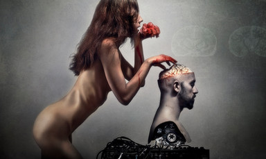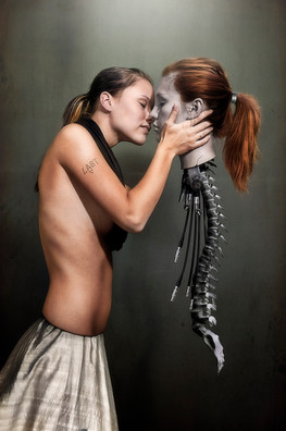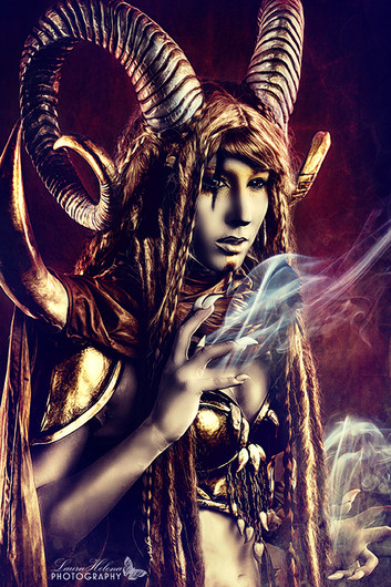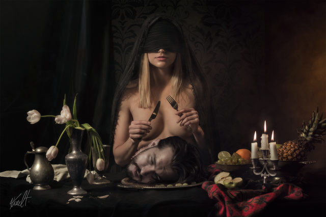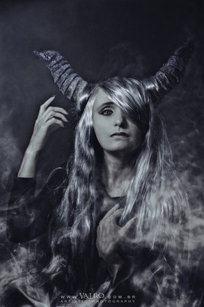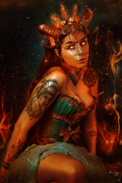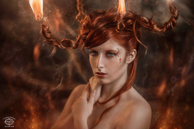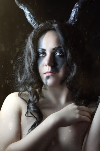 Natural long-haire model Eva posing for my "succubus" concept.Classic digital photography, manipulation, hairstyling.