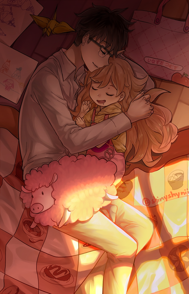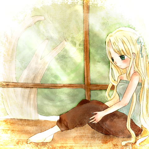 That little thing next to her is a snail. ^^ Snails, besides being cute, are my definition of moving forward from a hard time in life. You go forth painfully slowly, but at the same time, you are still moving forward and not looking back. That's why I included it.