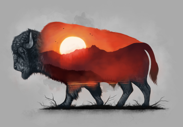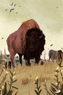 #animal #bison #brown #bull #canada #drawing #eyes #fur #grass #head #horns #majestic #nose #winter #art #illustration #mixedmedia #plants #traditionalart #traditionaldrawing