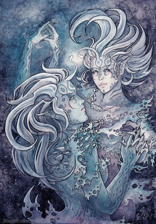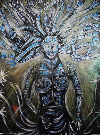 Nooo idea how long I have spent on it, but yea, this is one hell of an experiment... Most of it was done with oil paints, but oh silly me~ I couldn't paint on another layer with acrylics, so this damn thing has three layers of mat acrylic varnish (the varnis didn't want to stay on either) an oh glory~ The acrylics still didn't want to stay on the varnish layer. So... This is one hell of an annoingly unpleasant effing half assed abstract-ish experiment and the result is as bad as possible... Blaaa.... Should have stayed to watercolours and markers, I guess.
