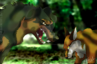 If you dare get in my way again, I will kill you Katarzyna (golden jackal) threatening Svetlana (red fox), as she always be doing.