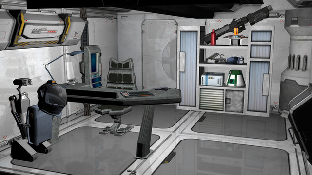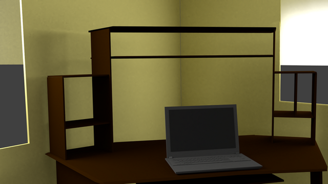 You should not hate yourself - the shelving is too thin, and does need to be about 2x maybe even 3x as thick as it is - the method I used to make them will allow this to be fixed without a total rework of the whole the desk - as each shelf and each upright panel is still individual objects (I did that so that texturing would be less of a pain)