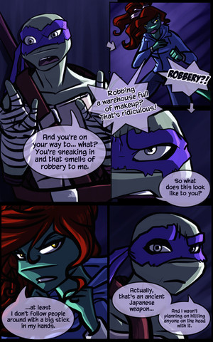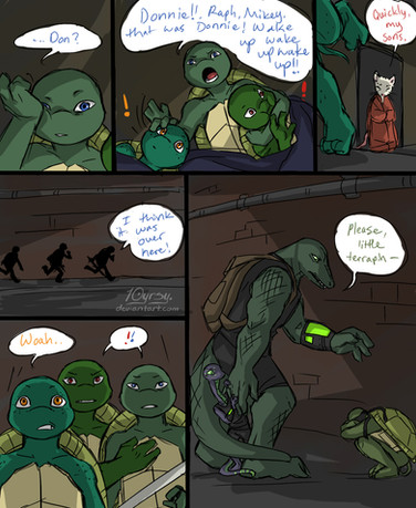 Maaaawww poor Donnie, his face though XD when did the face implant happen again...? I'll have to go back and find it.