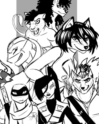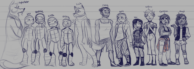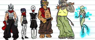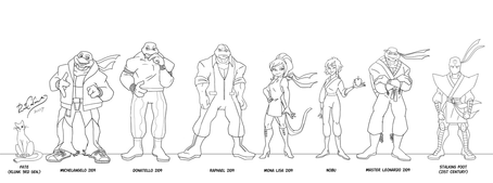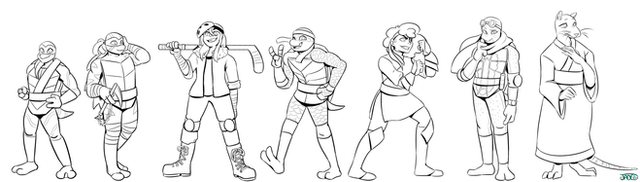 This is alternative version of TMNT main characters from our russian FRPG "TMNT: ShellShock"Donatello, Alopex (Lo), Casey Jones, Angel, Tao Shan, Splinter & Karai (Miwa)'s design and art + Sally Pride & Angel's art ©