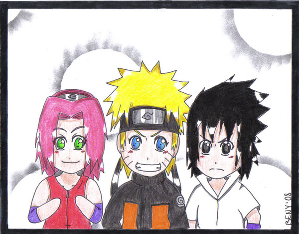 Великолепно нарисовано!! И композиция то, что надо! Один Наруто, как всегда, радуется всему, что его окружает, словно он сам солнышко)) Сакура как обычно недовольна, а Саске по-барабану)) восхитительно. Даже в такой обыкновенной картинке абсолютно точно переданы характеры и настроения героев))