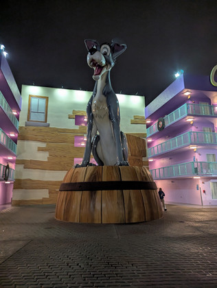 This is the huge statue of Perdita. She was right across from Pongo. She's approx. 25 feet tall, five feet shorter than her Husband.Perdita (c) Disney
