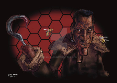 Holy Shite!!!That is one pissed off bastard!!I love it!!LOL!!The way he looks you know your going to be gutted from groin to gullet,nice over all creep out factor with the bees!!Kick-ass stuff!!!