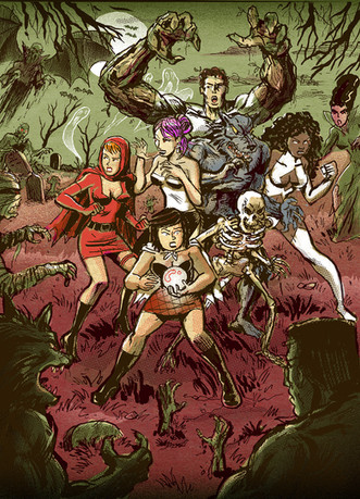 Anyone who draws horror needs to make an illustartion with this title, I think it is mandatory.This was a fun hoomage to the old "Tales of VooDoo" and "Tales from the Tomb" comics. The wolfman, Frankenstein's monster, Dracula and the mummy all beating the hell out of each other while two scantily clad women look on in awe. The stuff dreams are made of.
