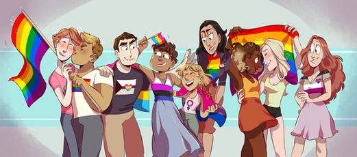 Some of my lgbt characters!Incase you don't know the flags and/or (more likely) my character's names;