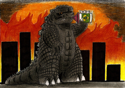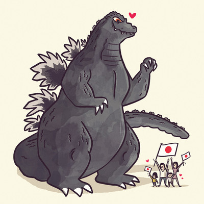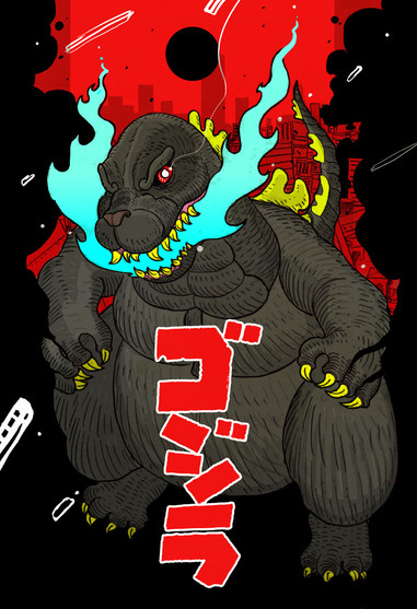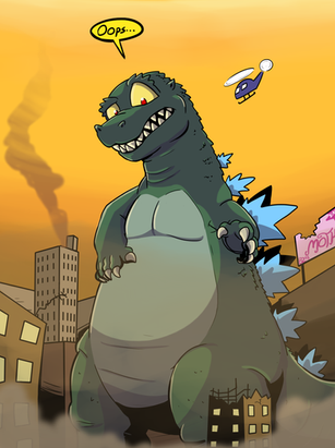 GOJIRA!!!!!He's a Godzilla, but he LOVES the trains... hard on the outside, with a squishy jelly filling