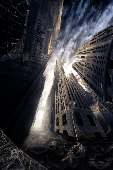 This is awesome and incredible and AWESOME AWESOME AWESOME. It's just all falling apart and there is just one light in the whole world and it just looks gorgeous. Really, really good work!