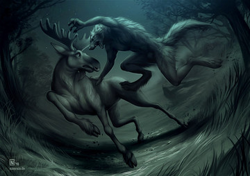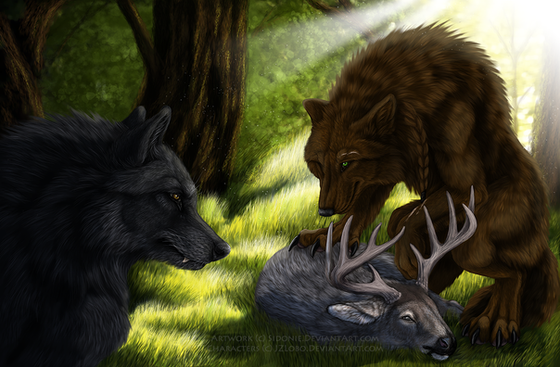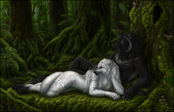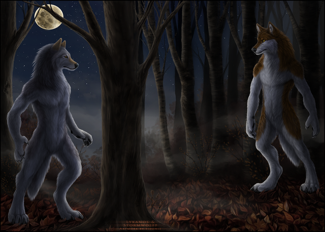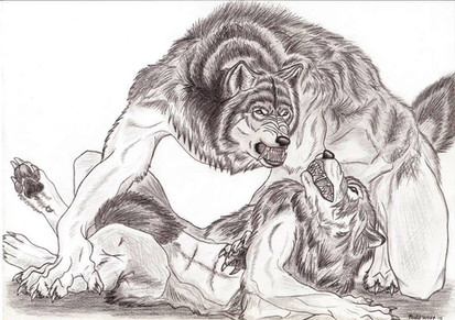 Edit:// Updated with brighter image, it was a little dull in the online version :/was the first place winner of JZLobo 's illustration contest and I donated an illustration to the prize pool. I was really excited when he won because I knew he'd have some awesome werewolves for me to draw. These are his characters Randi and Noah during Noah's first shift, being a werewolf can be hard to control at first