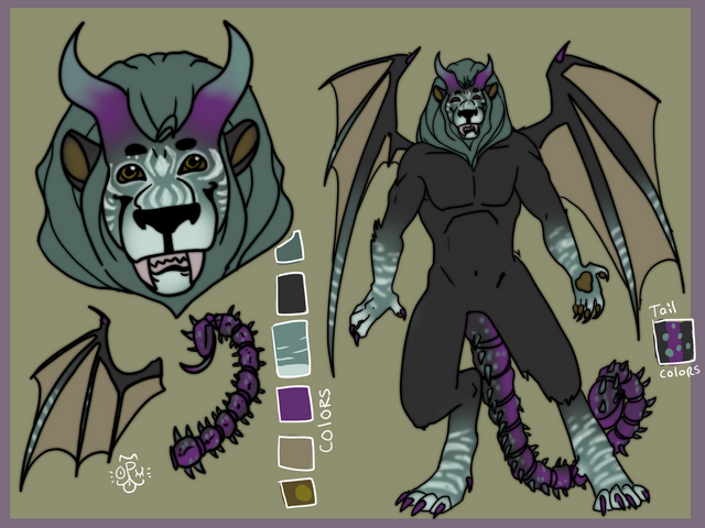 #oc #characterdesign #commission #custom #feral #furry #fursona #lion #manticore #originalcharacter #referencesheet #refsheet