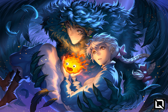 Wowie wow wow! This is one of the best fanarts of this movie that I've seen!Β I love that you mixed both of Howl's forms in this picture! It looks great! Aha and Calcifur looks awesome too! :'D Great, great piece <3
