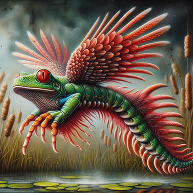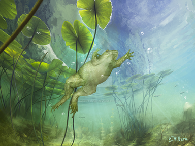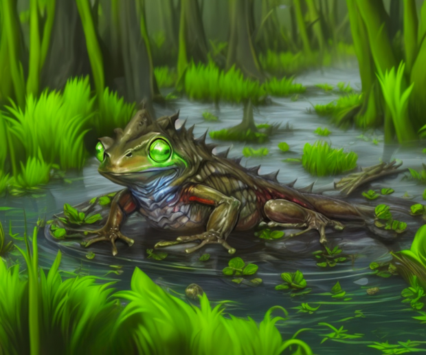 #digital #future #amphibian #animal #creatures #evolution #fictional #frog #illustration #imaginary #lagoon #life #moss #painting #pond #swamp #weird #wetland #artworkdigital