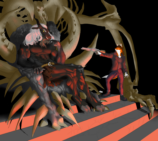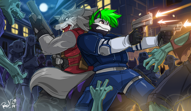 Sin decir más, Angel salió corriendo con espada en mano y comenzó a atacar a todo lo que se movía, sesgando y descuartizando cuanto se le ponía por delante. Por su parte, Siekfried había acopio de su puntería, y con certeros disparos en la cabeza, apenas se despeinaba mientras acababa con los enemigos.
