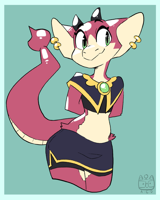 #anthro #dragon #female #sfw #red_eyes #long_tail #blitzdrachin #green_scales