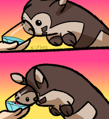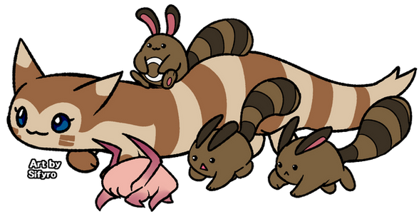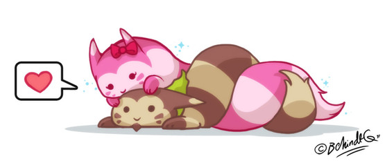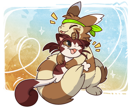 #chibi #furret #goat #happy #hug #mustelid #pawpads #paws #pokemon #sfw #sherb #animal_crossing #closed_eyes #blitzdrachin