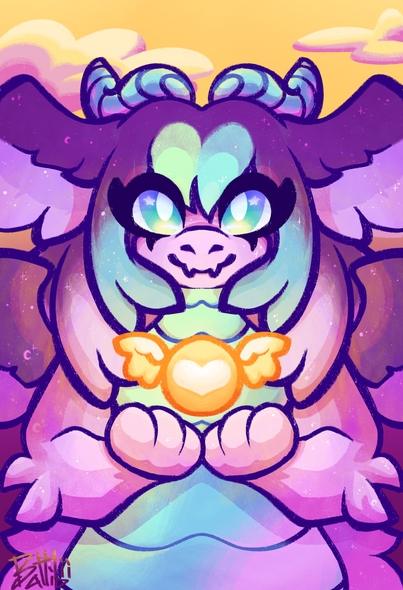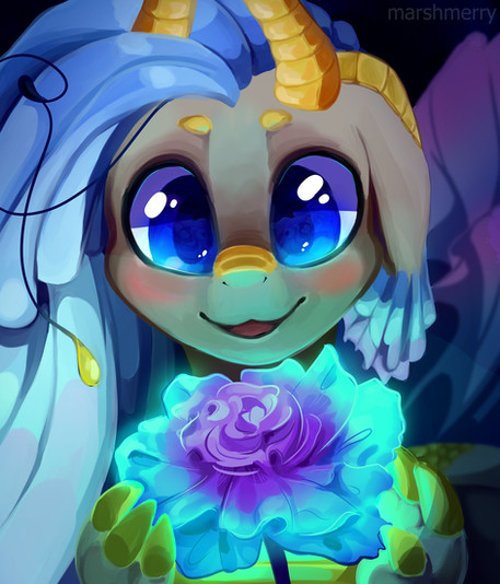 #claws #dragon #evening #horns #sfw #smile #wings #blue_hair #sifyro #blitzdrachin