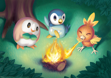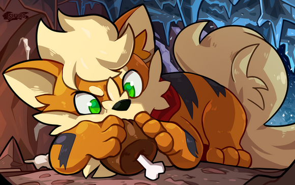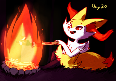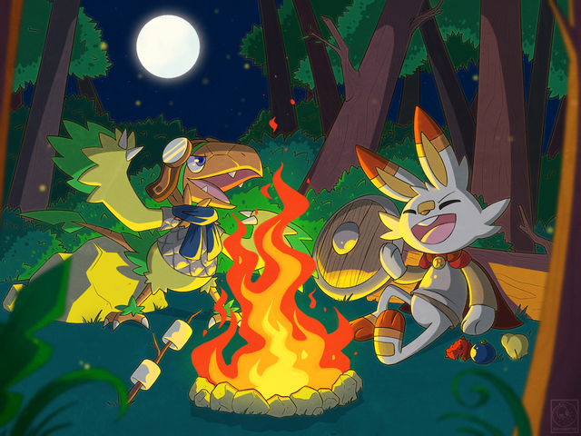 #camp #campfire #canid #feral #food #grass #meat #pokemon #sfw #blitzdrachin #unknown_pokemon #half_closed_eyes
