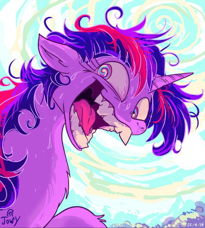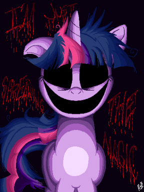 If you can't find a friendship problem! You have to MAKE a friendship problem!My submission for NATG XIII, Day 11! Today's prompt was "Draw a pony with a friendship problem / Draw a pony making new friends."Β Just a simple episode moment redraw for this one to get back into the swing of things. Though I thing it ended up coming out pretty dang creepy, haha xD Simple, but I had fun with it in the end. The creepy background, and some fast last-second shading I added just layered on top, definitely really intensified the whole thing, so I'm glad I did it xDΒ