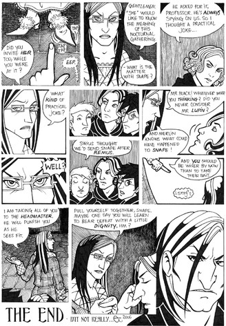 I do have issues with the crying, thinking that Snape would have felt way too much anger to cry but thats what's so brilliantly genius about this comic, another way of picturing Snape. I definitely enjoy your work