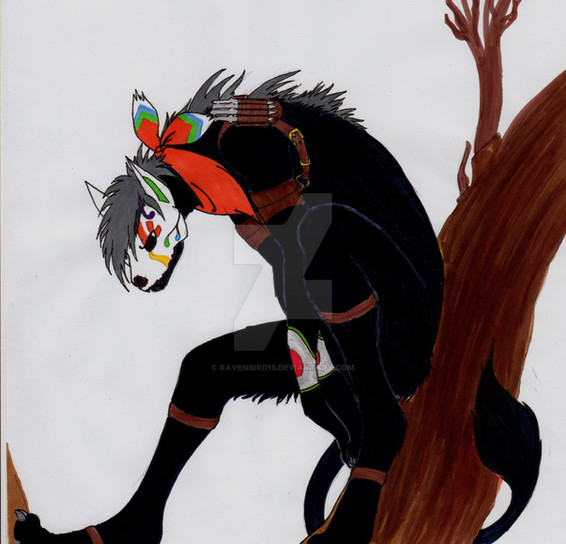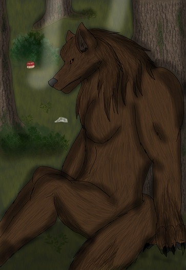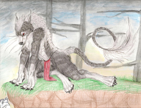 A werewolf resting in a tree, the position is more cat like but o well, I messed up painting a fur >_> put a little too mcuh brown and when I wanted to go back I coudnt. And the back ground was very improv.Our inperfections are what make us beautifull!