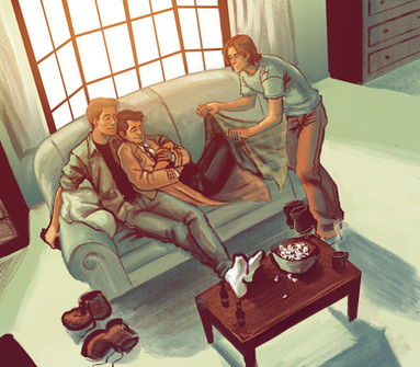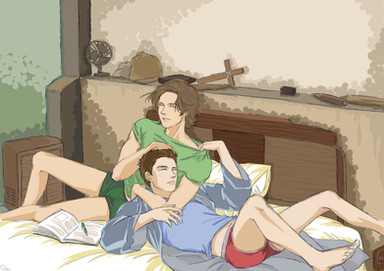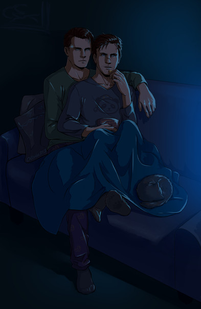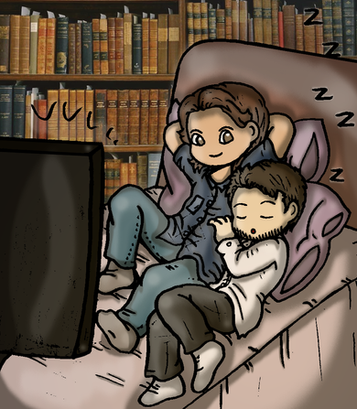 XD That's how I imagine their reading time and I LOVE how you made them snuggly together! Β