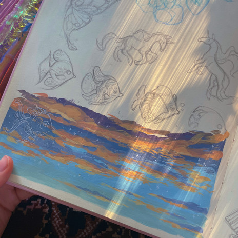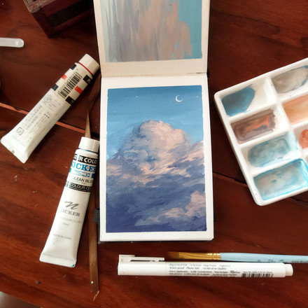Painting the sky on gray paper. Here's the process video, www.youtube.com/watch?v=zYW3SR…Hope you have a great day~