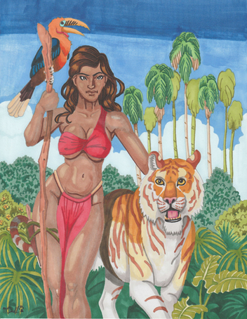 Cool colours! I especially love the details you put into the fauna and her hair.