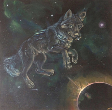 A happy little arctic fox floats through a beautiful and vibrant galaxy!An unusual concept that came to me through a combination of the Major Lazer cartoon, a DJ poster I found with a space fox on it, and watching a lot of movies and documentaries on space lately. The background was certainly a challenge using just marker and colored pencil!