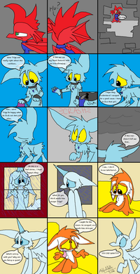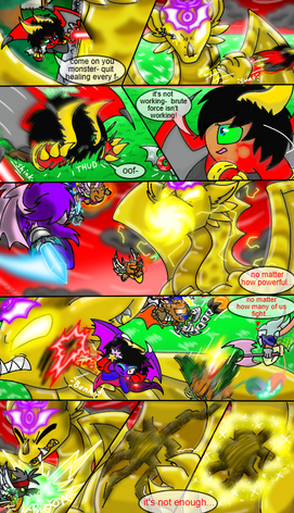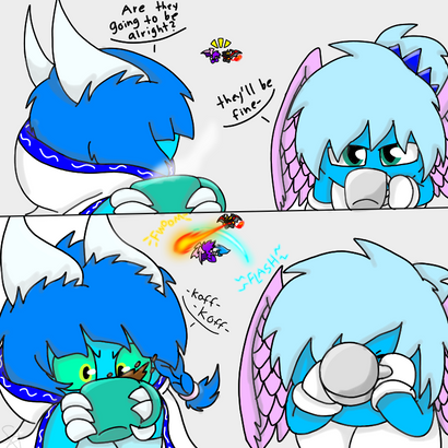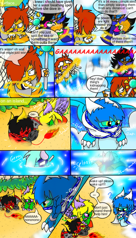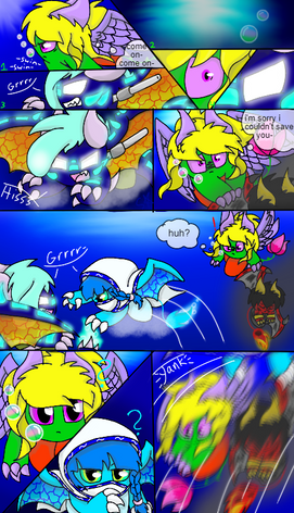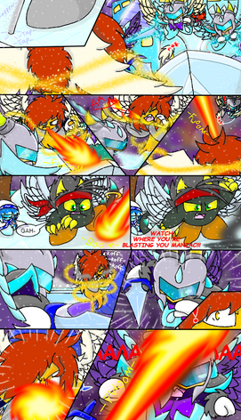 The second panel is practice for line breaking images i will add at some point to "Tale of the Fallen Kirin" whenever there is intense action or something like that, the characters will come out of the panel lines