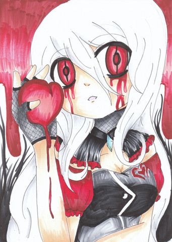 #anime #black #bleeding #blood #girl #grimm #heart #manga #monochrome #red #grim #hood
