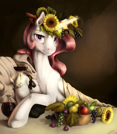 The intent is more for her to be the alicorn princess of Fauna/nature, so was going for a Druidic look in the description I sent silf