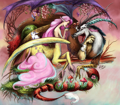 let me just say I love the little details in this one; the tongue sticking out of the tatzlwurm at the bottom plus the way grass and plants are growing in fluttershy's wake really sell this one