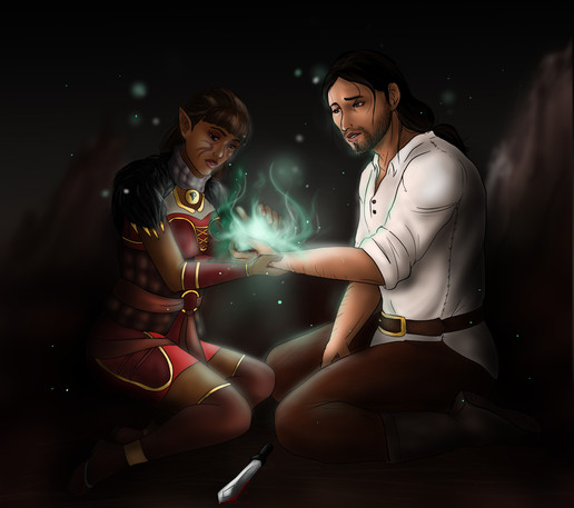 The contest prize for amazing - her Ereb Amell (*squee*) and a bonus... 's Kylla SuranaI don't know if I did them justice, but I hope they don't look too bad