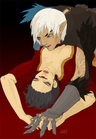 Ekhm. I'll better not speak about those kinky favors... But seriously now, I've been meaning to try drawing Ereb for some time (and I am sure I wouldn't resist adding Kylla, after what happened when I started sketching this one ), Luby just gave me an awesome excuse to finally do it