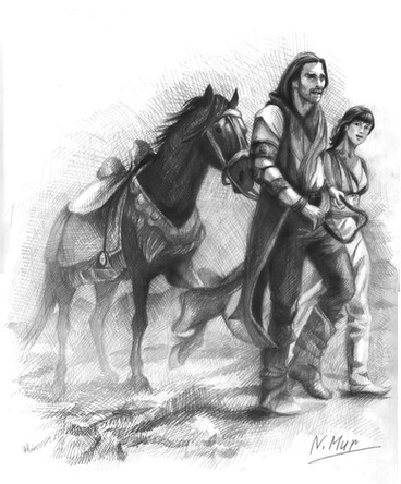 Ref. photo by GloomWriter [link]This wanted to be Eowyn and Eomer, or anyone else from Rohan, but I'm not satisfied. Not at all. And I have to do something with the background, but I hate backgrounds...