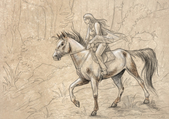 Riders of Rohan! What news in the Riddermark? ! It doesn't matter it hasn't got any background yet - the figures they 'are on a roll' they have 'power' behind them. D*mn i could never draw a proper rider figure - congrets on that! And the horses of course - my imagination is messing with me, for i find the one on the left 'dragon-y', must be becouse of its/his head. The rider on the right side - i think she's a bit scrawny (but i dont know, maybe that was your intention) and something bugs me about her face - but i dont yet know what. About background: Rolling hills of Rohan