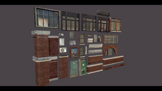 -the model consists of 2 texture sheets, 1 for the modular pieces and 1 for the misc pieces, both are 1024, textures are very basic as texturing is not my forte or focus
