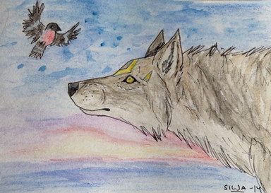 Cool you drew a bird!! I really can't believe how much you improved since you've got these new watercolours! Just love this! The background looks cool with this white!