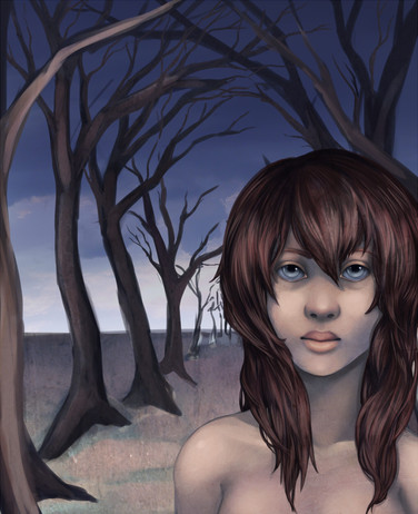 Wow, I love the idea and the title! Definitely caught my eye when I saw it. I'm impressed that this is your first time working seriously with watercolor. The skin looks so detailed and although the trees don't have as much detail it seems, they have the right amount of color to look nice. Great job with this.