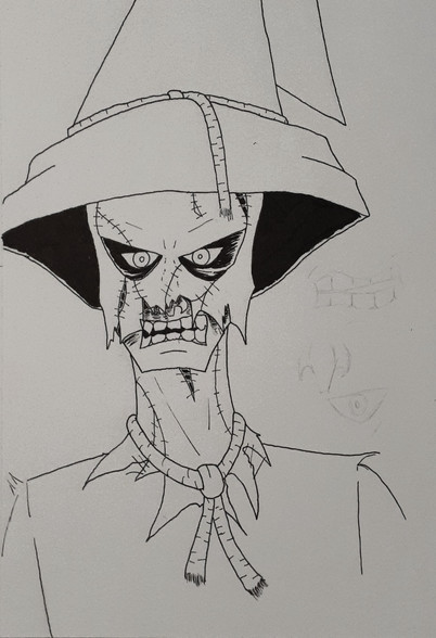 Here is the Scarecrow!I just want to say how the Scarecrow design from TNBA was possibly the best one! I love how the mask looked like a corpse so I incorporated that into this design along with the thin baggy frame of the design from Batman TAS.