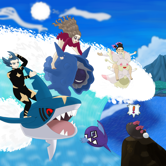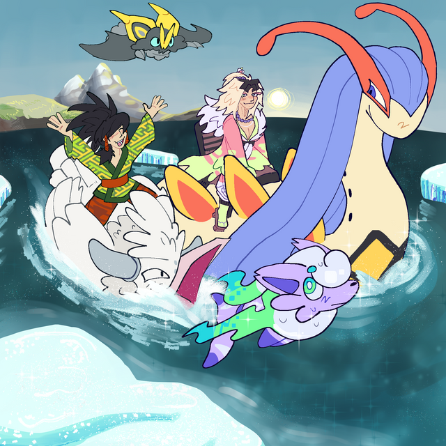 I drew Basculegion and the background, and he drew Akari and the other pokemon~