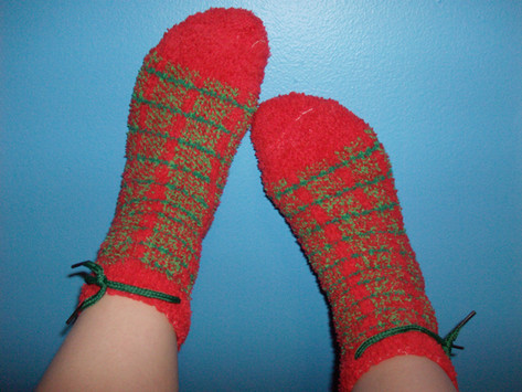 I am so happy with my latest crochet project! These socks came out soft and furry and warm and they make my feet just sooo happy!I went to the store two weeks ago and found the fuzzy yarn and thought they'd be perfect for socks but I didn't have a pattern. Looked online last night and just...kinda...made them. ^.^