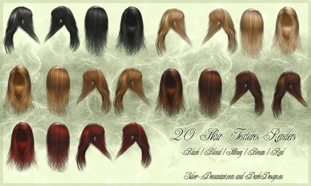 My eyeball texture set is doing well so i also made some renders of hair in different colors.You get 5 sets of 4 different colors in a 750x500 dimension.