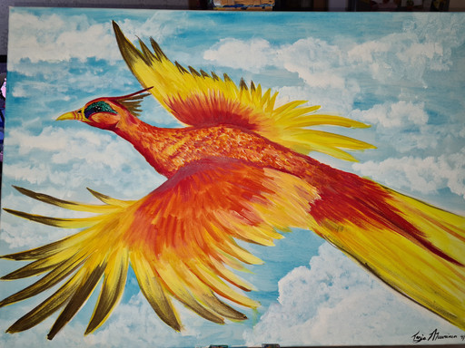 #2022 #acryl #black #coloredpencil #drawing #january #orange #phoenix #red #traditionalart #yellow #january2022