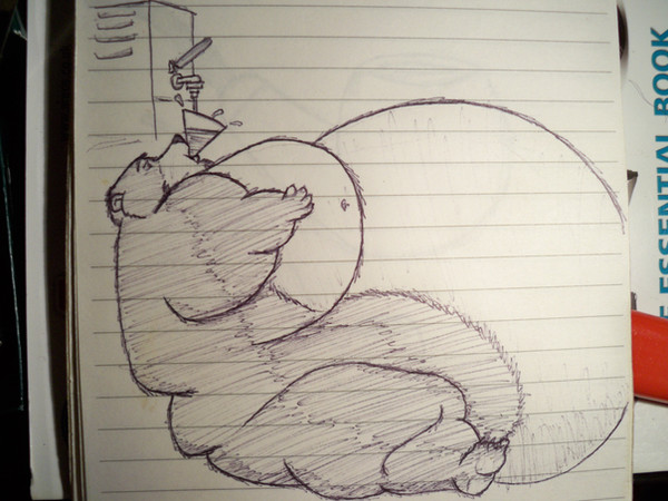 Besides the unexpected growing and blimping, I sense something more nefarious is afoot here! If I could get off my bloated behind, I'd smash myself out of this facility, with the way things are going though, my rump might do all the breaking for me.Sorry Bethy, I loved the idea. :3