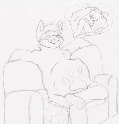 Marcus watches over his sleeping wuff Silver; perched atop the the fox's belly.Related content