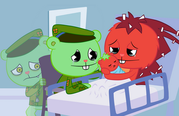 Aww poor flippy * runs over and holds flippy in my arms* what's wrong flippy? You can tell me I love you * pets flippy's head gently*